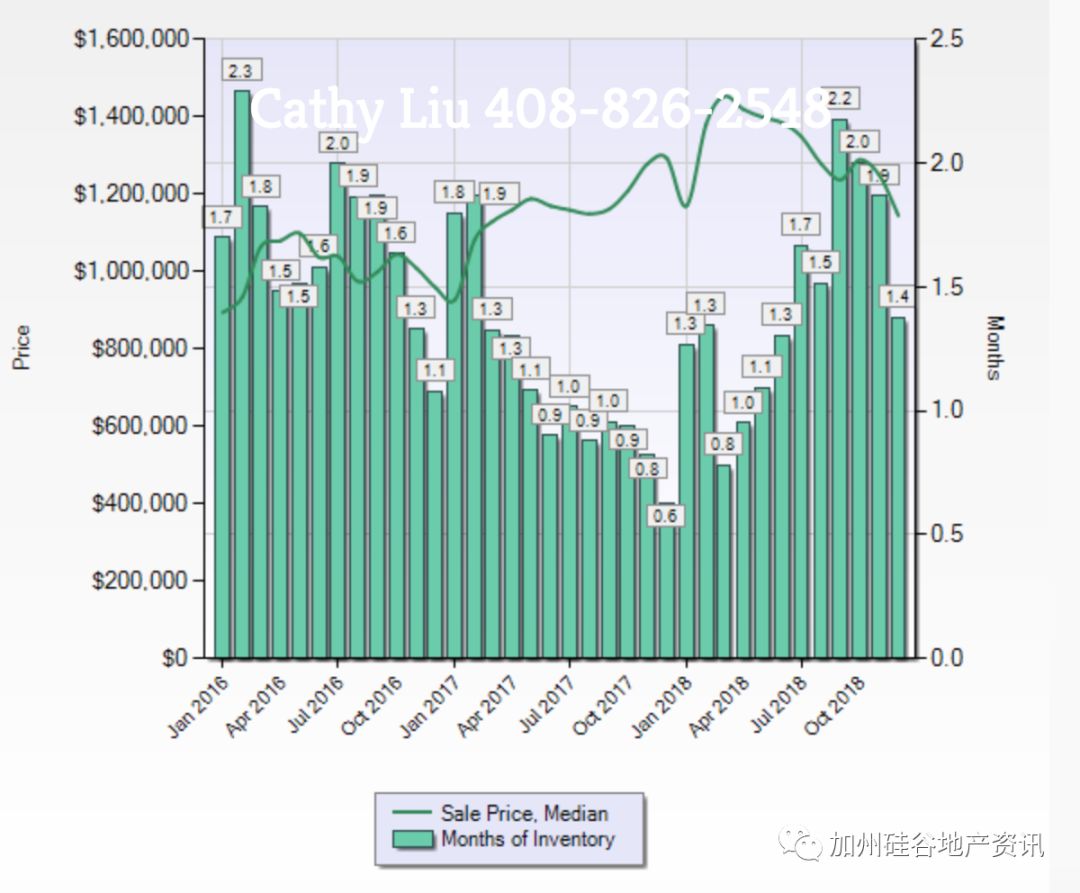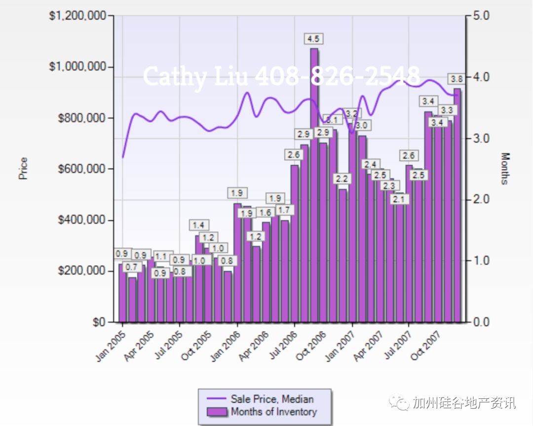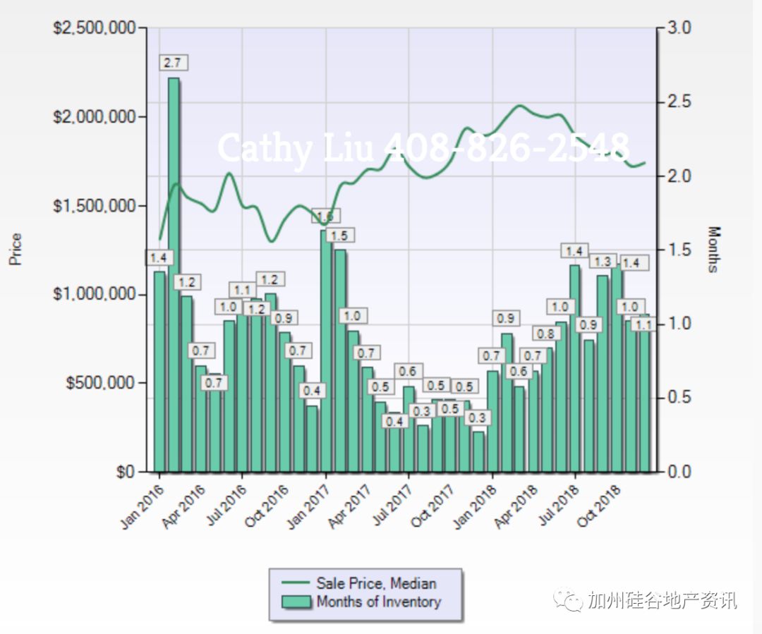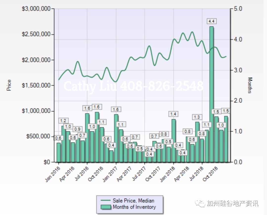 因为房屋的价格和房屋库存量相关,我把每个月对应的库存量也画了出来,给大家参考。这个值是months of inventory, 顾名思义就是需要多少个月把这些库存量消化掉。这个值越高,表明市场上的库存房屋就越多。我在去年10月的文章“南湾最新市场分析“ 比较详细的分析了房价受供求关系的影响,这里就不多说了。