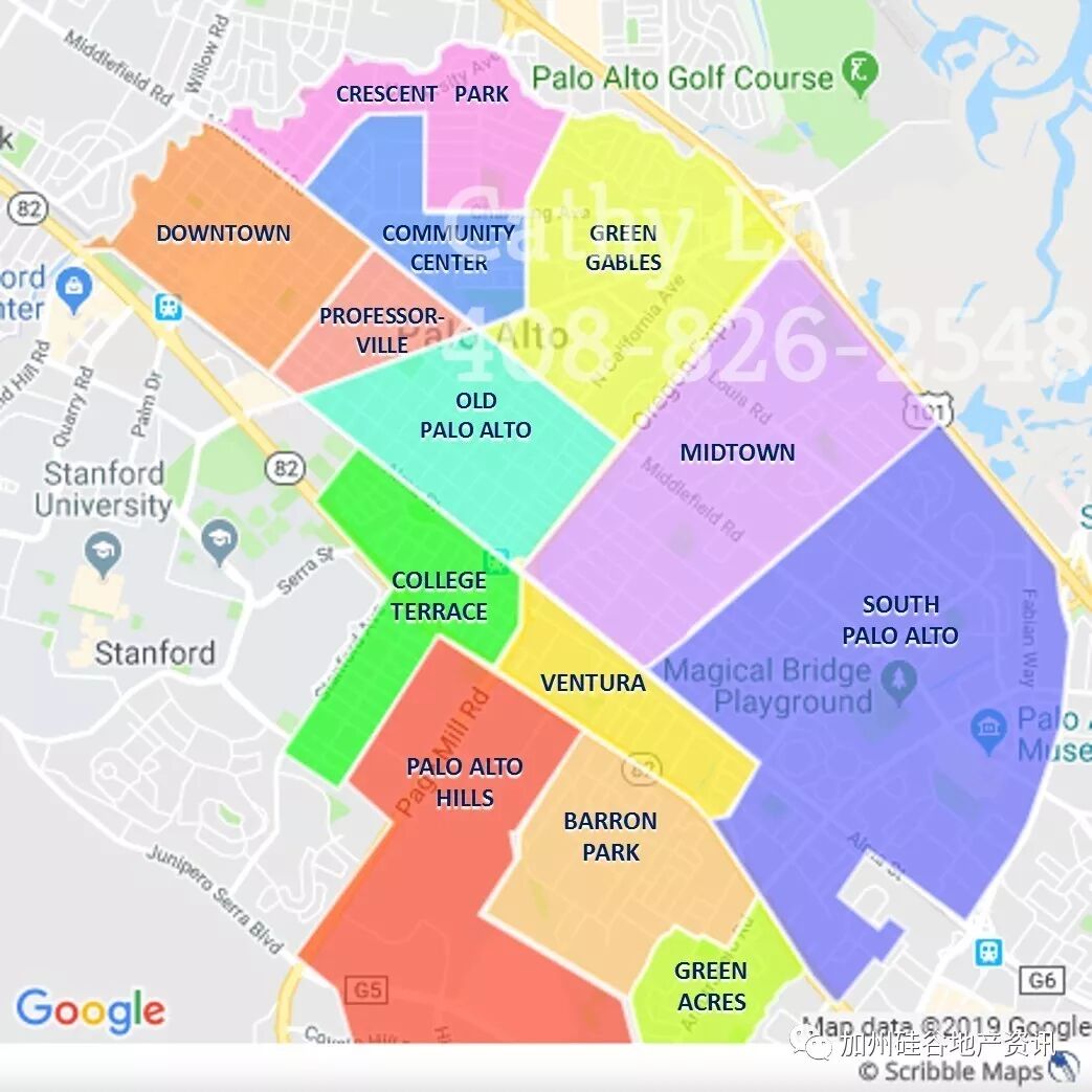 Palo Alto市有13个小社区。每个社区各有自己的特点。(关于社区的划分,不同的资料也略有不同,Cathy参考了网上的资料,加上自己理解,本文就按这13小区来谈吧。)